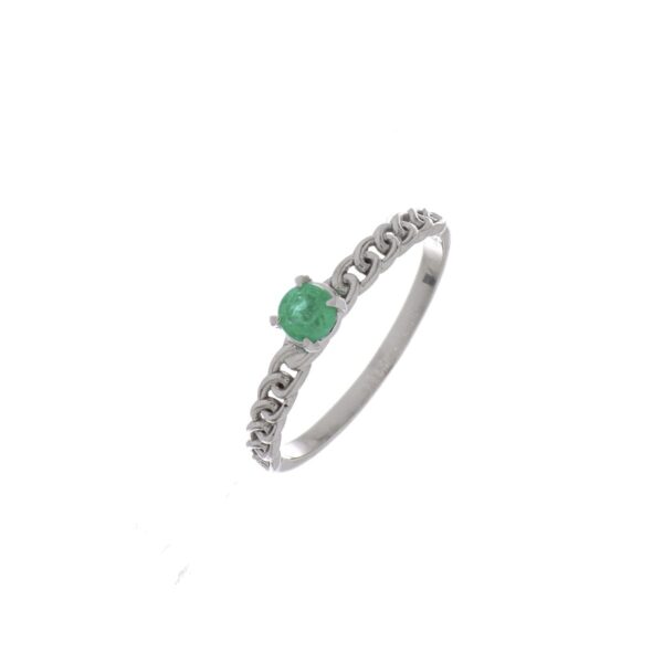 ANILLO Oro Blanco Solitario Esmeralda
