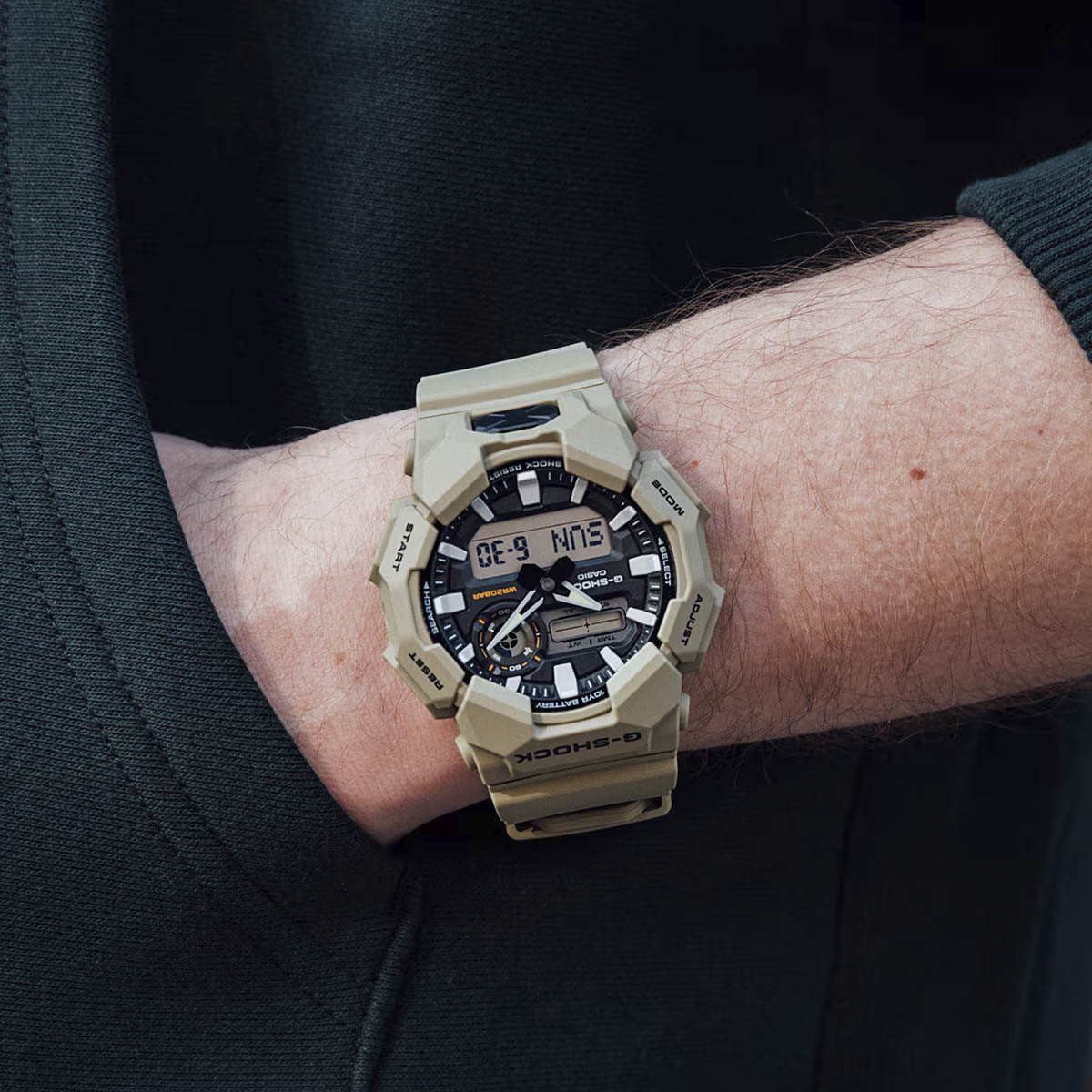 Vive sin preocupaciones de carga con un G-SHOCK de caja grande, que ofrece una batería de 10 años de duración, para que puedas disfrutar sin interrupciones durante mucho tiempo. El GA-010 analógico-digital ofrece funciones prácticas como la hora mundial y el cronómetro, con una pantalla grande y de fácil lectura, además de una caja de gran tamaño.