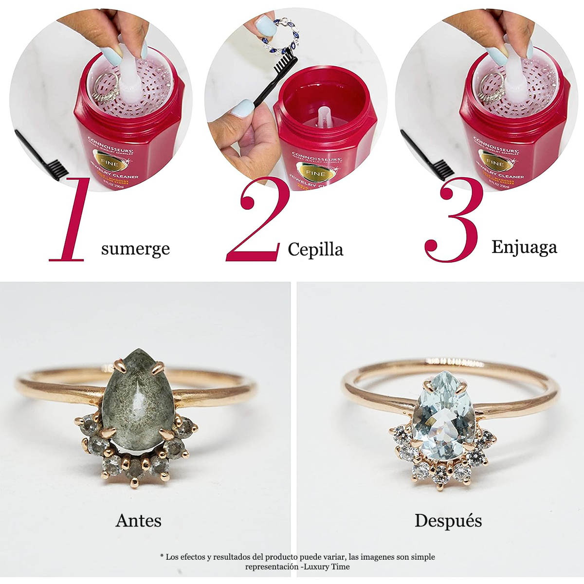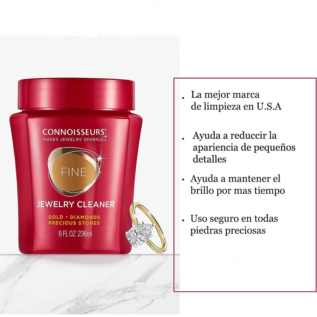 El uso regular de Connoisseurs Precious Jewelry Cleaner resaltará el brillo de sus joyas de oro, platino, diamantes y piedras preciosas. Los polímeros en nuestra fórmula de limpieza de joyas ayudan a reducir la aparición de pequeños rasguños en la configuración. Los conocedores Precious Bath son una buena manera de limpiar la mayoría de los metales utilizados en joyería hoy en día