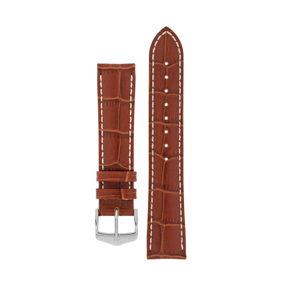 HIRSCH Modena Marrón 18. Su carácter clásico con un toque deportivo hace de esta pulsera un accesorio popular. La mejor piel de becerro italiana con relieve de caimán de aspecto natural y superficie semi mate con característico tono de dos tonos.