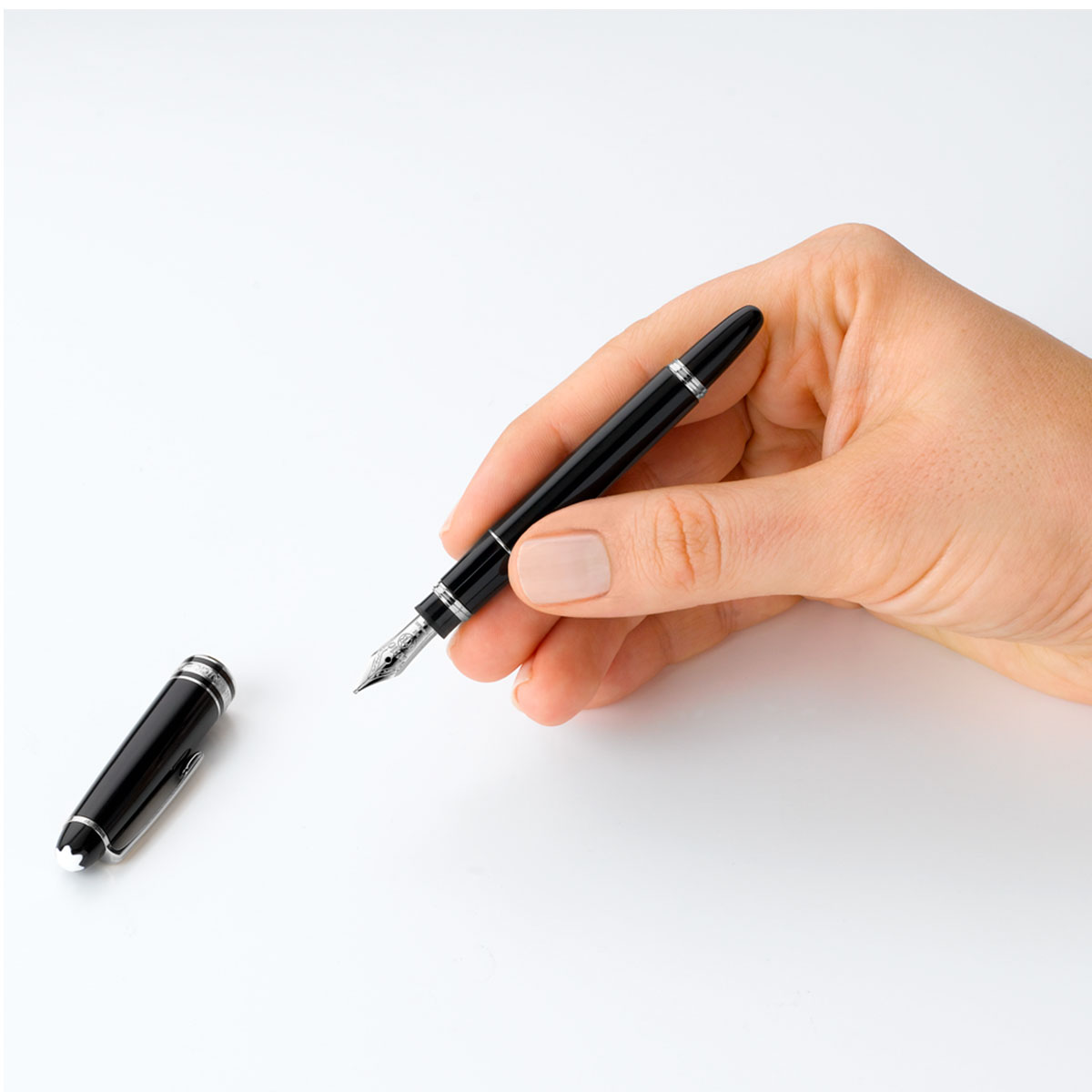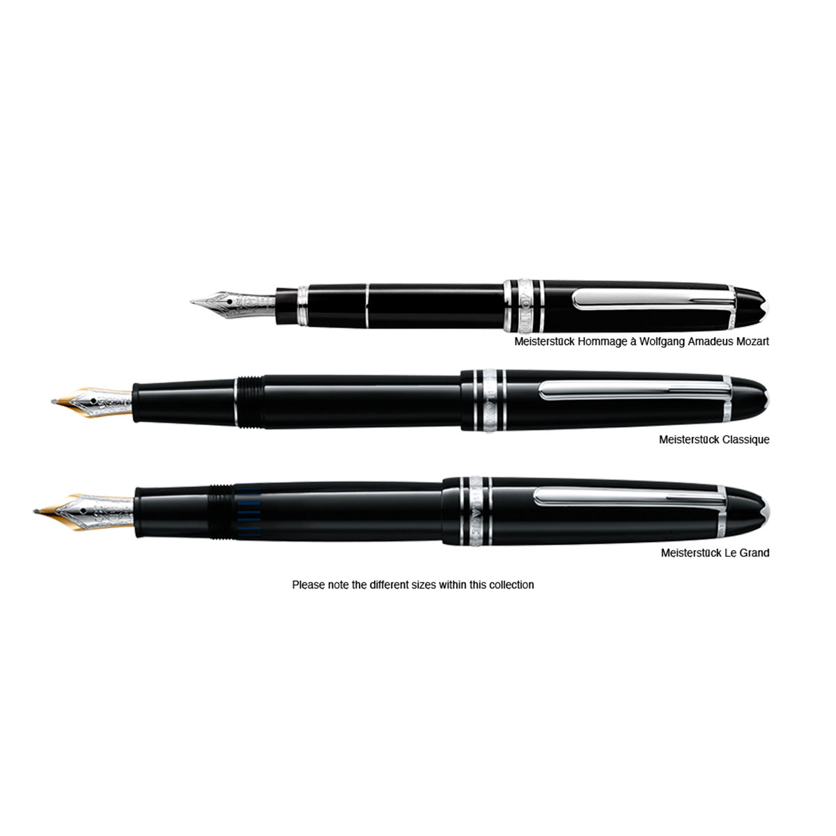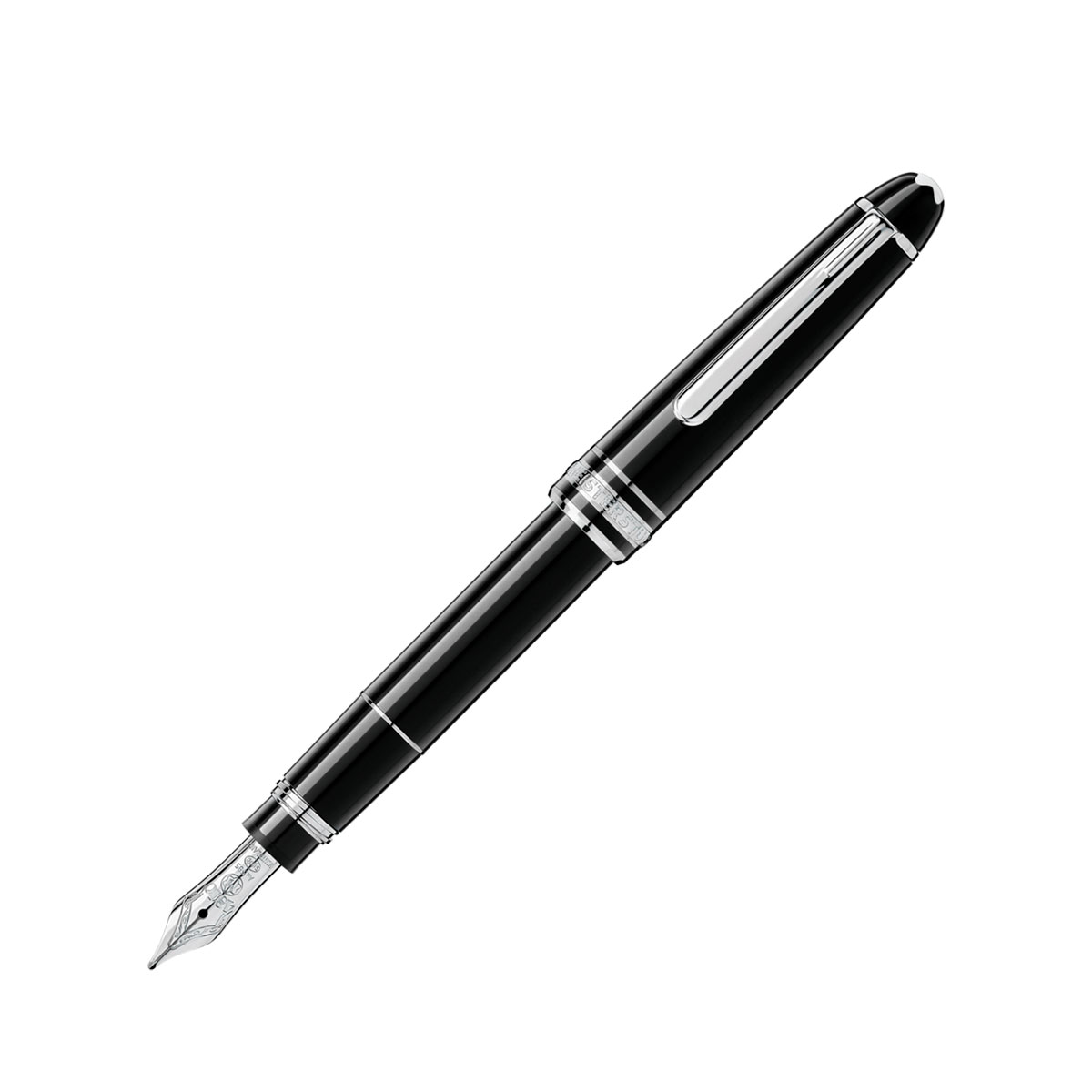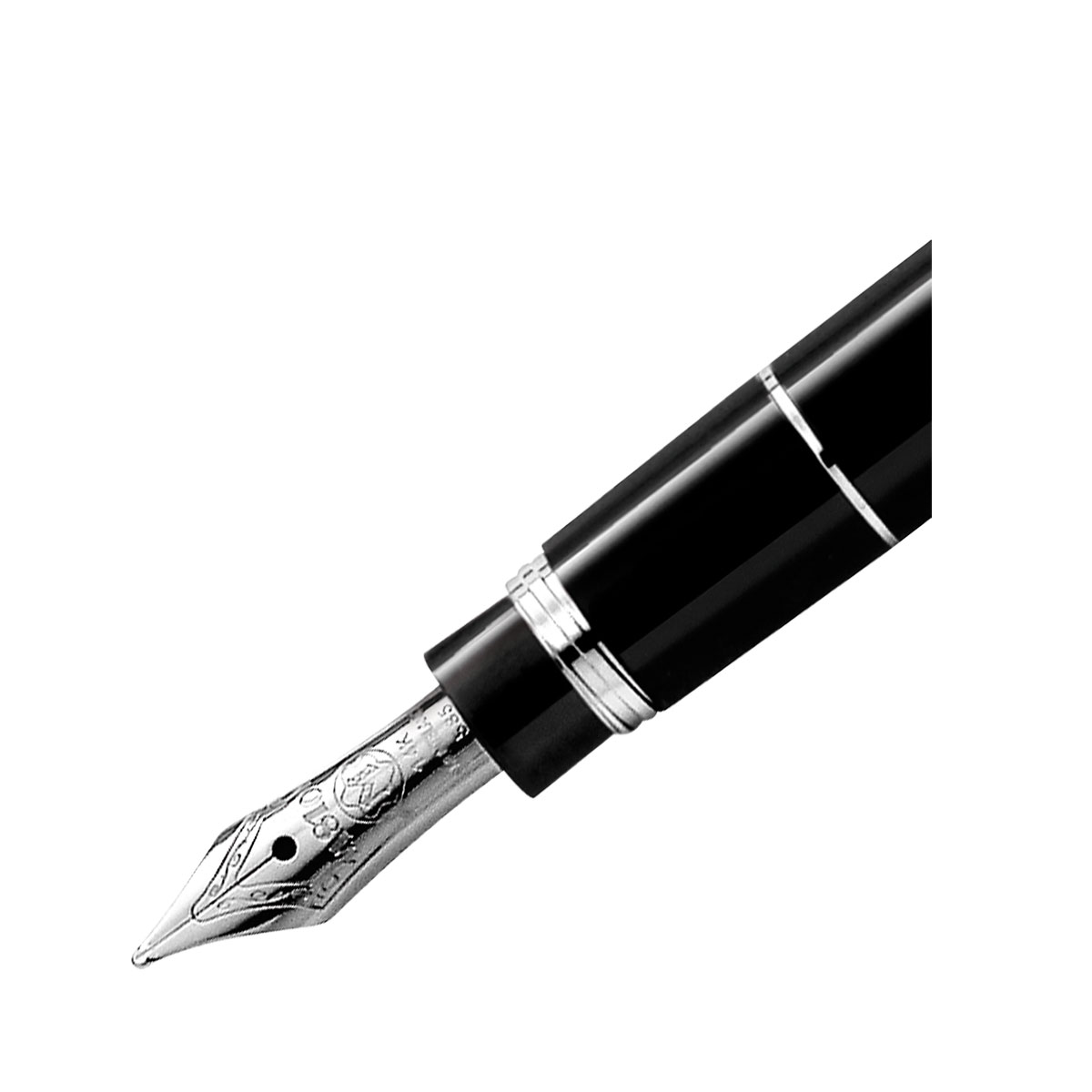 Meisterstück Homenaje a W.A. Mozart (tamaño pequeño) 5029, elaborado en resina preciosa negra con detalles platinados, realzado por el emblema de la estrella blanca, y dotado de un plumín de oro artesanal.