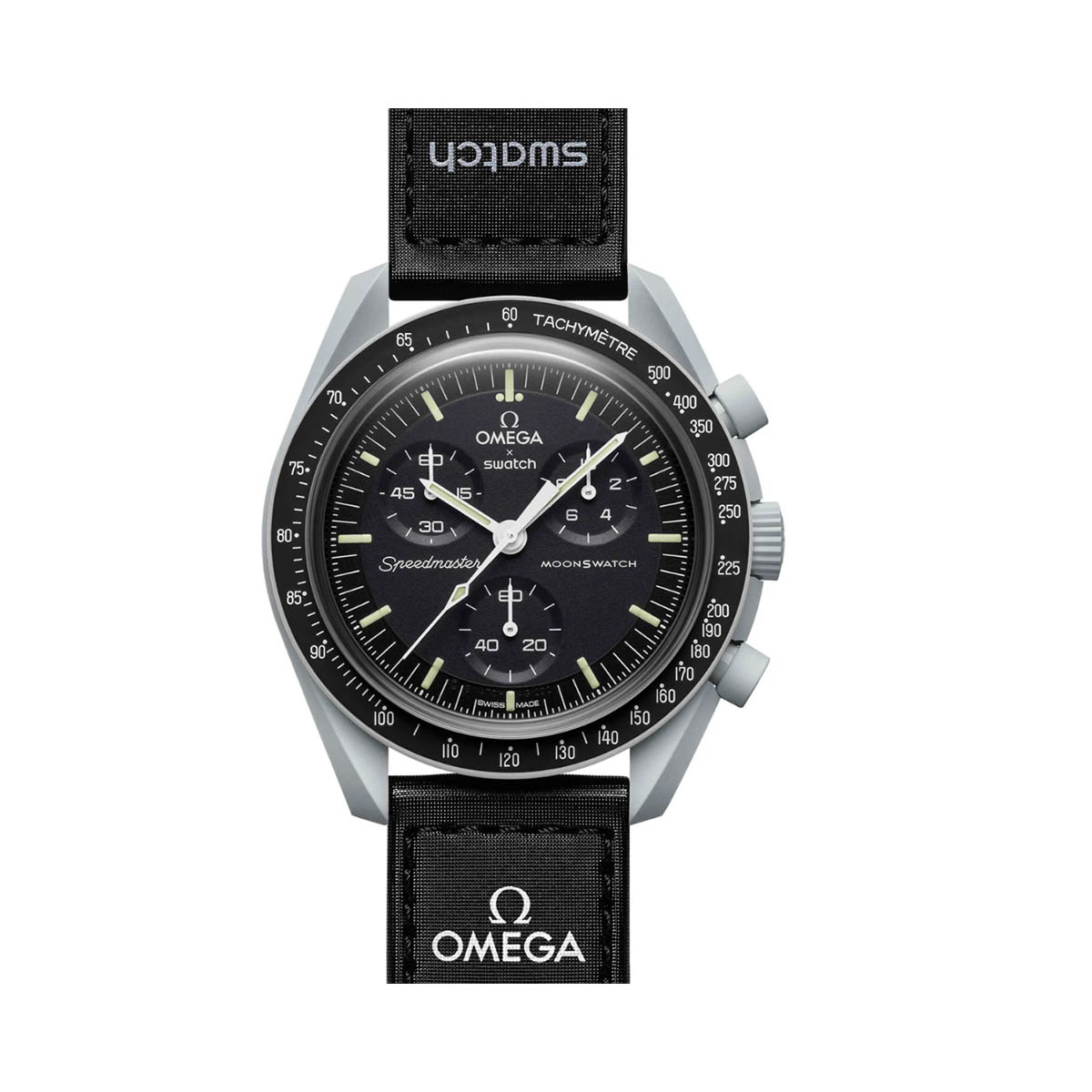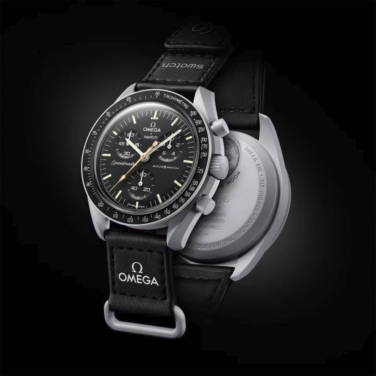 OMEGA X Swatch celebran el emblemático Speedmaster Moonwatch, el primer reloj que fue llevado a la Luna. La Colección Bioceramic MoonSwatch es el resultado de una colaboración inesperada, audaz y visionaria, la primera entre Swatch y OMEGA.