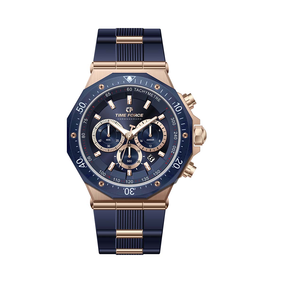 Reloj Time Force Status TF5025MRB-03 para hombre, caja en acero inoxidable . Cuenta con calendario y segundero montado sobre un tablero azul, y un bisel en acero PVD azul, pulso en caucho azul.