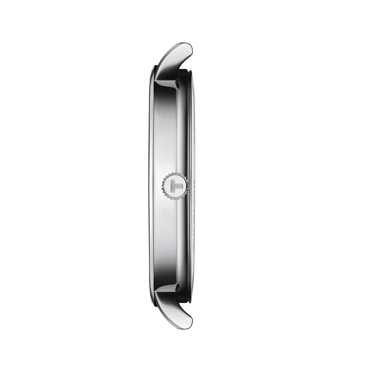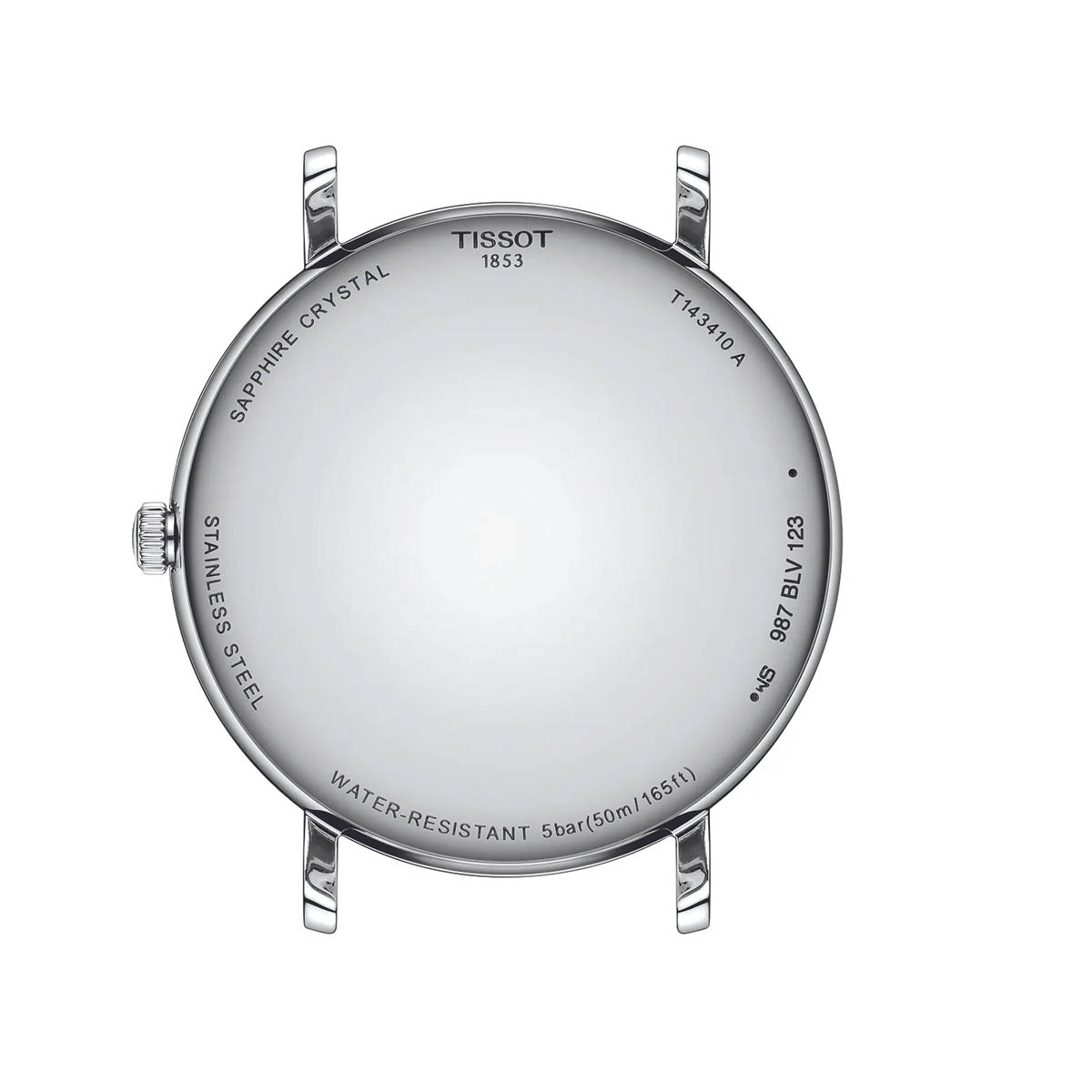 El Tissot Everytime T143.410.16.033.00 es un reloj suizo de estilo clásico y minimalista que combina elegancia y funcionalidad para el uso diario y ocasiones formales. Su caja de acero inoxidable de 40 mm y su esfera blanca limpia con números romanos o marcadores discretos crean una estética atemporal que se adapta a cualquier atuendo, mientras que el cristal de zafiro resistente a rayones protege la esfera y garantiza durabilidad.